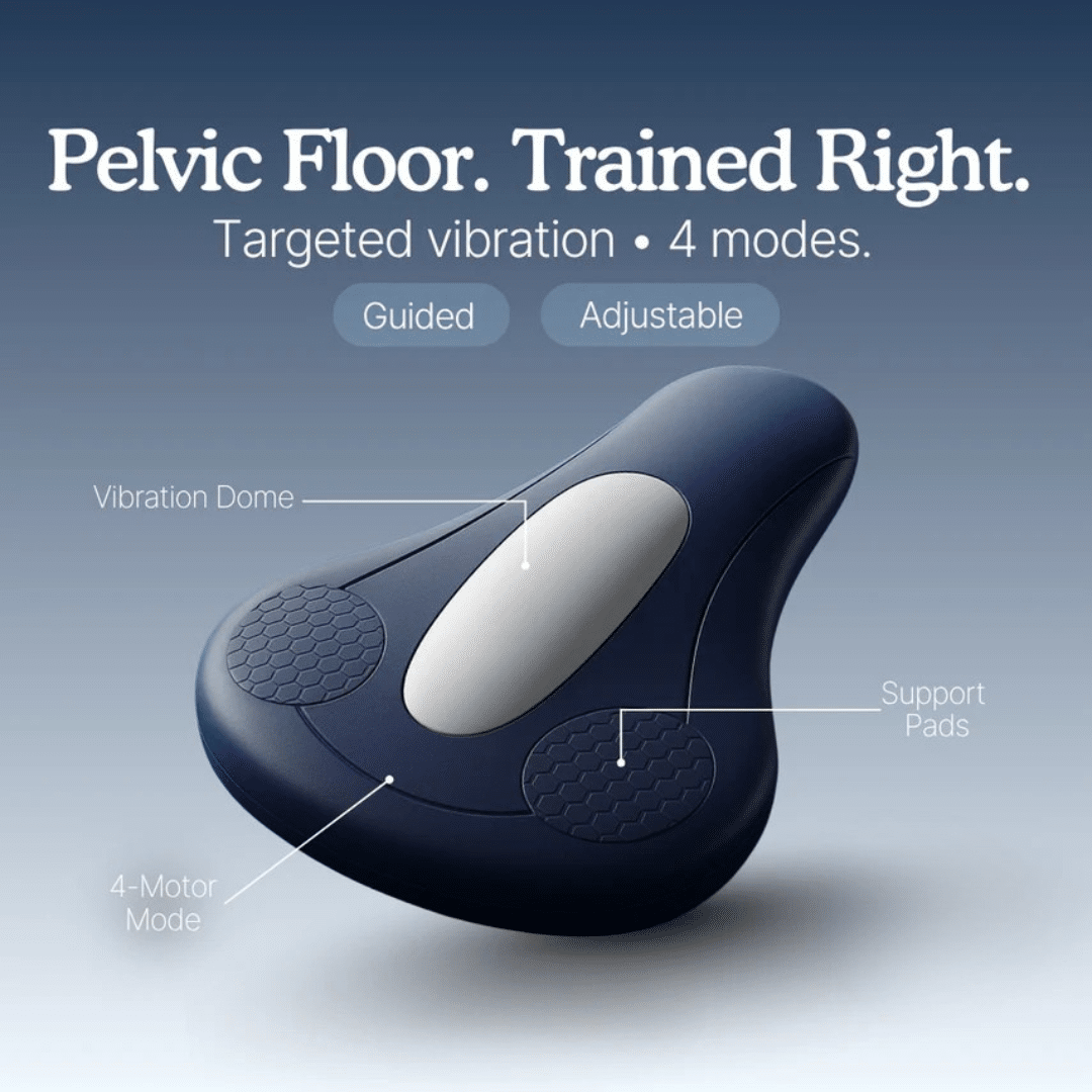 - Build a consistent pelvic floor routine without awkward positions, complicated instructions, or clinic visits—just sit, follow the cues, and let the guided session lead the work.